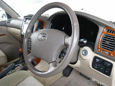 できあがり♪ ・・・ってホーンパッドとステアリングのレザーの色が違う・爆 どうもランクル君の内装は3色構成だったようで、ダッシュボードやドア内張り上部がグレーなのでグレーだと思い込んでましたが、ステアリングとエアバッグのみ濃いベージュだったようです^^; とりあえずしばらくはコレでヨシとします・笑