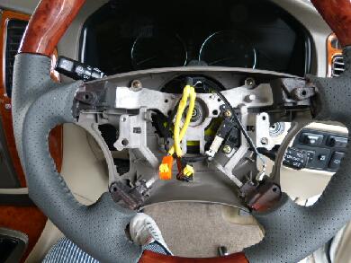 エアバッグに2つコネクターが刺さっているのでソレを外します。エアバッグが外れたらステアリング本体を外します。