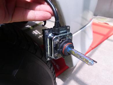 事前に室内で点灯確認をしているだけにあり得ない状況です・笑 左右とも点灯しないのでまさかと思いHIDのカプラーを左右逆に取り付けてみました。 |