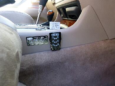 コントローラー部は配線がコントローラーの最下部から出てます。なので配線が見えないようにするためにいろいろ考えてみたんですが・・・とりあえず的ですが運転席側のコンソール側面に貼り付けました。コンソールの上面に取り付けたいんですが配線の処理が思いつかず・・・とりあえず完成です♪ |