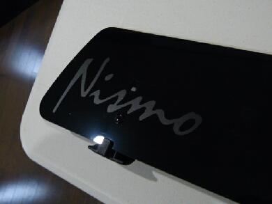 フェアリング本体は艶ありブラック的な感じです。基本的にあんまりでしゃばる感じは好きではないので運転席上部側にはマットブラックのカッティングでニスモのロゴマークを^^ |