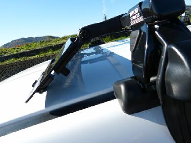 ルーフに接地するはずのゴム足が左右の2個はちゃんと接地できるんですが、中央2個がうまいこといきません^^; |