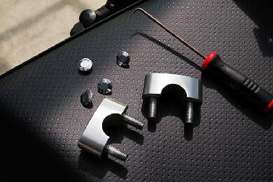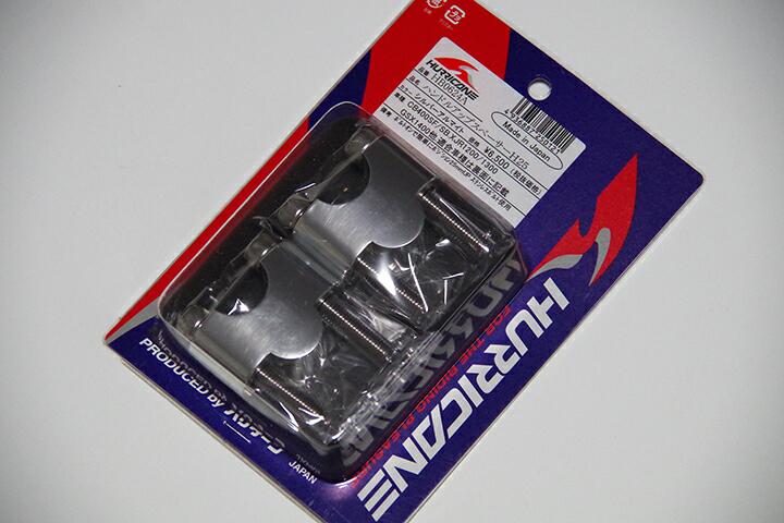 | こちらがハンドルアップスペーサーです。コレを純正のポストの間に挟んでポジションを手前にする感じですね。 |