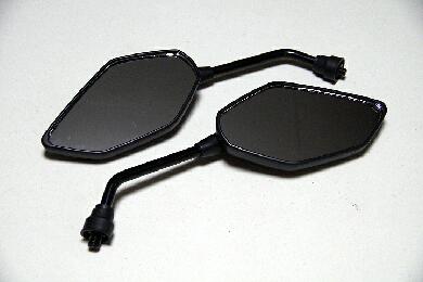 | まずはミラー本体を用意しました。ホンダ用のネジになってますのでスペーサーや変換などを使わなくてもコレだけで大丈夫なタイプです。個人的にミラーなど飛び出るパーツは黒で目立たないほうが良いと思っているボクですので黒で^^ しかもお値段はペアで980円・爆 「やっぱり違うな」と思ったとしても買いなおすに当たって悔しくない金額だったりします・笑 |