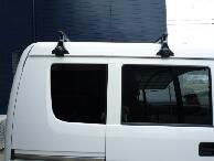 右側面と左側面を往復してアルミラックのステーの幅に合わせて位置出しをしました。載せてから車の前後をうろうろしてセンターを確認して固定して終了です。 |