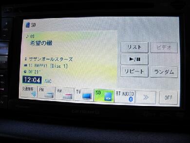 当然ですがタイトルもバッチリ出ます。・・・ってPC内でアルバムタイトルが取得できていれば、なんも問題なくSDにファイルをコピーするだけ出来上がりです。CDをナビ本体でリッピングする時間を考えれば数十秒で1枚のアルバムを取り込みますのでお出かけ前にサクっと出来ちゃいます♪ スカパーデジオなどの音源をPCにダイレクトに取り込み、それをマイクロSDに入れれば最新のヒットチャートなんかもタイトル付きでいけちゃいます♪わりと便利かもです。 |