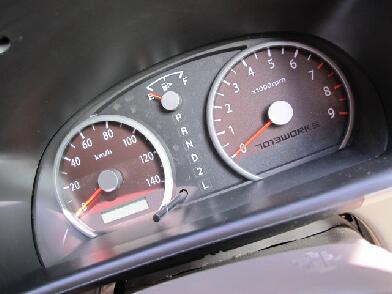「7013WORKS」のカッティングを貼ります。速度計側には液晶があるんでバランスを考えてタコメーター側に・・・ベースが茶系の濃い色のパネルなので黒でさりげなく・・・って黒文字しか在庫がないです・爆