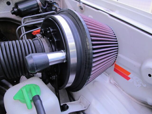難しいことはなにもなく・・・付属のステーでボルトオンで装着完了です。型式によって手前のパイプ部分に黒いゴムキャップを装着します。 |