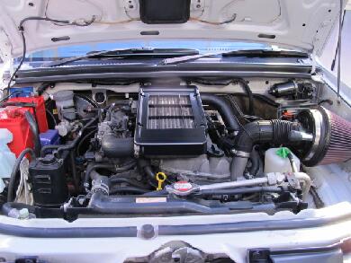 中古車だけにボンネットの中は小汚いです。こーゆープラパーツの色あ