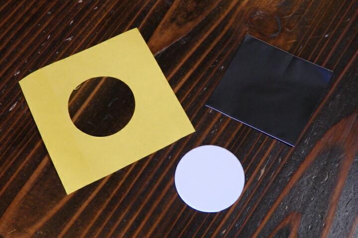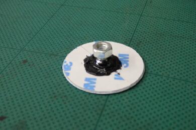 裏側両面テープの台紙を中心で丸くカットして皿ビスを貼り付け。