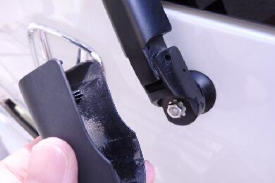 ワイパーは根元部分のキャップを開き気味にすると手で外せます。普通にナットで止まっているだけですのでここを緩めるだけです。