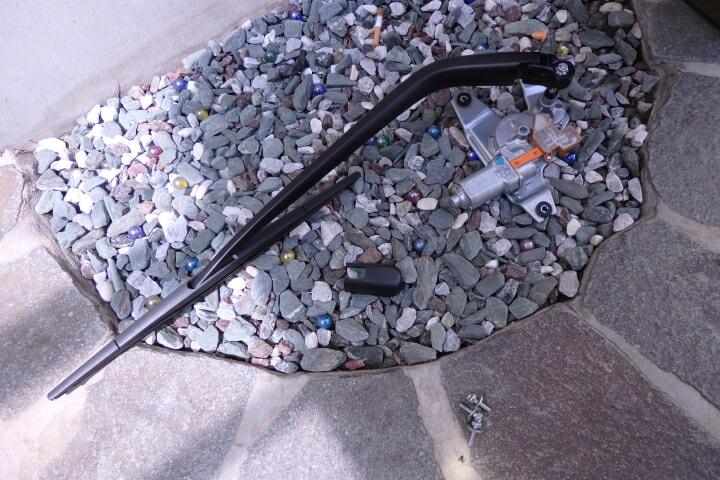 ワイパーアームとワイパー根元カバー、固定していたナット、さらにモーターと固定ボルト3本です。