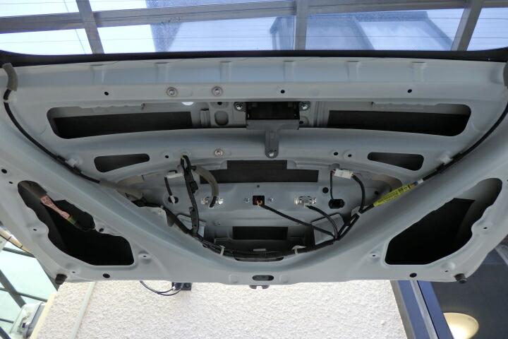 内張りを剥がします。初めてのときは相当硬いです^^; この車も初めて外すのでハンパなく硬かったです。