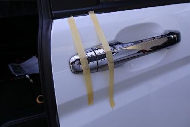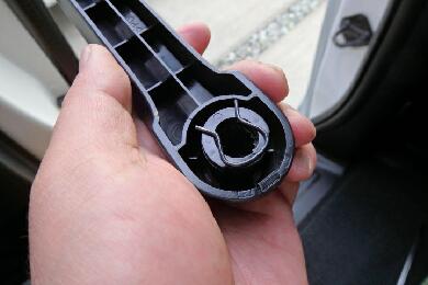 ドアの厚み部分にあるキャップを外します。手で普通に外せるキャップです。画像でいうところの右寄りの丸い黒いキャップです。