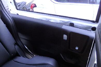 まずはスライドドアの窓枠後方にあるカバーを取り外します。向かって前方向にツメが引っかかってますのでめくるようにしてツメを外し、よくあるクリップは3箇所にありますので引っ張って外します。