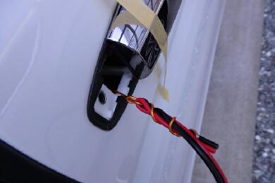 先ほど大きな画像で書いたコネクターですがこちらの配線にケーブルを接続します。極性はないので車体側の緑・黒の配線にそれぞれを接続します。