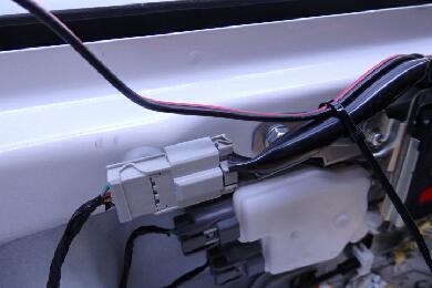 配線は元々あるハーネスに沿ってタイラップで固定していき画像右上のグレーのコネクターまで這わせます。