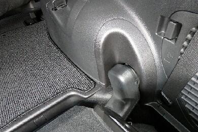 この回転する部分を解体します。当初は軸部分だけでも外せればと安易に考えていたのですが・・・シート座面の裏側を外せば台座とシートは分離できるのでそれだけでも乗車定員の減員はできるのですが、台座の形状が微妙で荷室スペースにかなり突出するのでそのまま放置できるようなものではありません。