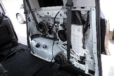 荷室側面の内張りを両方共に剥がします。どのみちサードシート用のシートベルトも外したいので。やってしまえばそれほど手間ではないので。