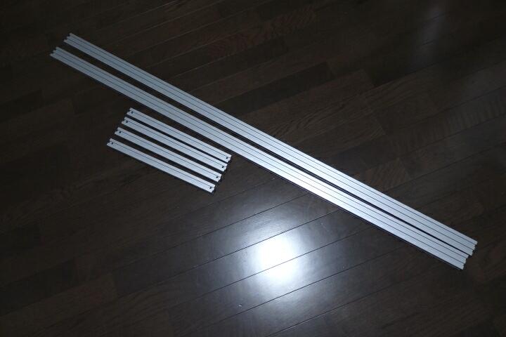 補強用のアルミフレームを4本入れます。一応見た目がよろしいほうがいいですので等間隔で設置します。 |