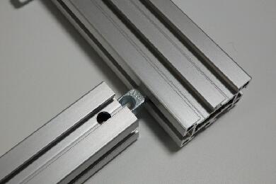 こんな感じのナット・金具を使用してアルミフレーム同士を繋いでいきます。 |
