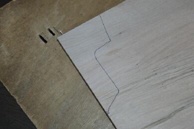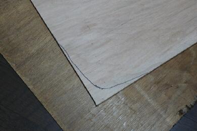 継ぎ接ぎだらけでかなり痛々しい型紙ですが、今度は型紙をコンパネに転写してカットします。