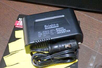 今回使用するのはこんな感じのAC100vとUSB、さらにはシガーソケットが一体となったマルチインバーター的なものです。実際は100vに関してはオマケみたいなもので高出力は期待できません・笑 |