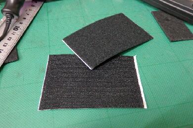 インバーターとコンソールの固定は接地面が微妙に平らではないのと素材が違うので密着しそうもないのでマジックテープの両面テープで固定します。 |