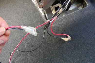 | 今度は車体側の配線を作ります。前回シガーソケットを増設した際に面倒でエレクトロタップを使用したので、ついでですので半田でしっかりやり直します。 |