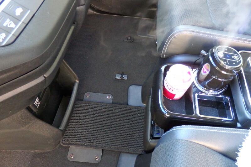 中央部分のフロアマットを設置すれば配線も見えずに社外品のセンターコンソールまで電源を確保できます。