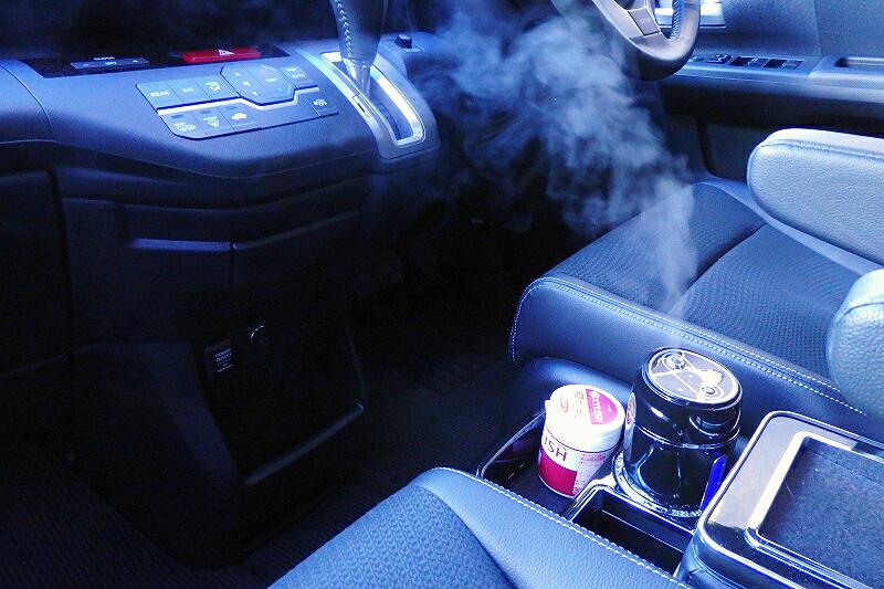 今まで純正ドリンクホルダーを引き出して使っていた加湿器を社外品のセンターコンソールを設置したことで