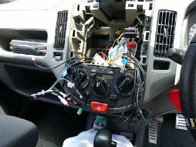 | タウンエースは車速やリバース信号など最近の乗用車と同じようにオーディオスペースにコネクターがありますのでヘッドユニットの設置はなにも面倒ではありません。むしろ問題なのはバックカメラの設置です。 |