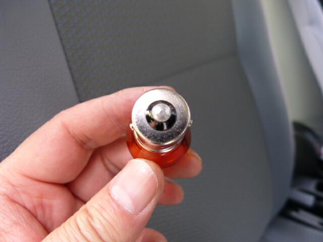 ついでと言ってはなんですが・・・ポジションランプもアンバーのバルブに変更します。こちらも透けると困るのでメッキのオレンジバルブです^^