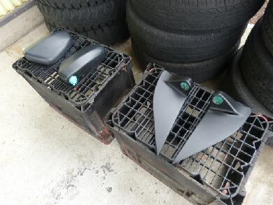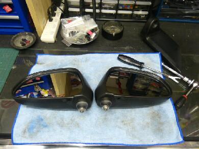 左右で摘出完了です。可動部分のボルトナットが錆び付いて取れないものが多いです。イライラせずに丁寧に作業しないと根元のボルトがミラー本体の中に入っちゃうと取り出し不可能となりますので注意が必要です。