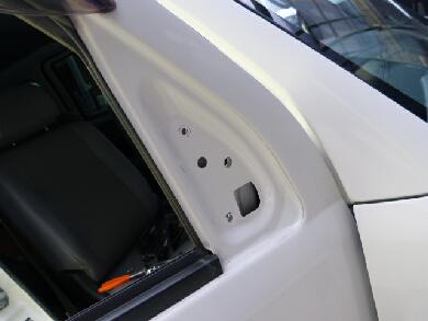| 先日組み上げた小耳ドアミラーを車体に組み付けます。ドアミラーの根元にあるカバーを取り外してドアミラーを固定しているナットを外します・・・が、電動ミラーですので配線があります。このカバー裏にコネクターがあると思ってましたがコネクターはドアパネル内でした^^; |