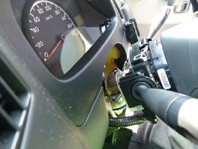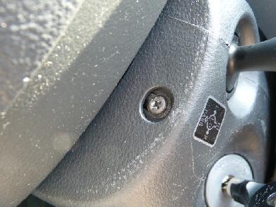 コラムカバーの下側にあるナット1本とステアリングを回すとあるネジ2本を外してコラムカバーを外します。