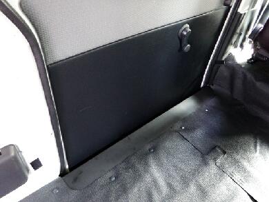 スライドドアをドアを閉めた感じです。隙間的には20〜30MM程度でしょうか。あれだけのスペースをステップとしてカットされているとフロアの有効面積が結構減ってしまいますんで・・・ウチの場合はこのステップ部分にモノが落ちたりしてやっかいでしたが、コレでバッチリです♪