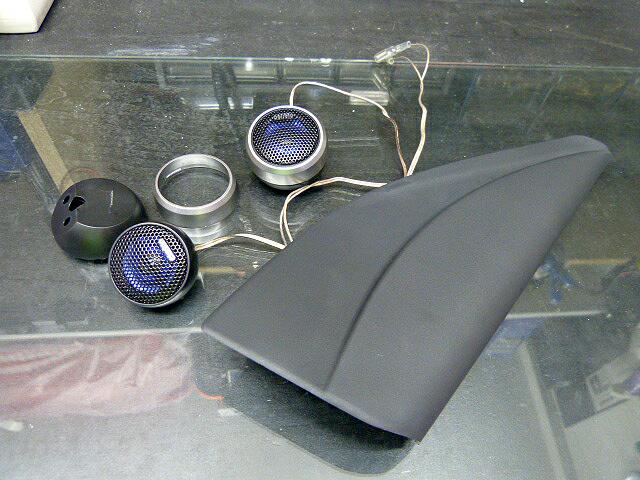 黒いパネルにシルバーのケース入りのツィーターよりは真っ黒同士のツイーターのほうが納まりが良い予感です。って埋め込むわけでもなくなんとなく貼り付けているだけですが・爆