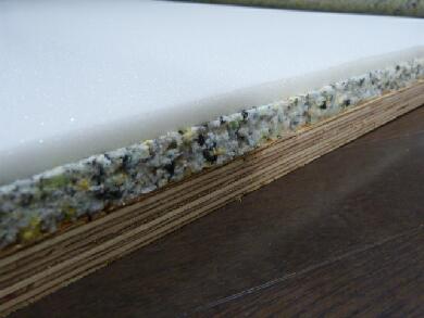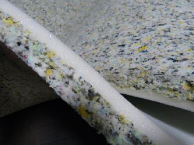 | こんな感じでスポンジ層とチップウレタン層の2重構造にしてみました。スポンジ層が上面に来ます。 |