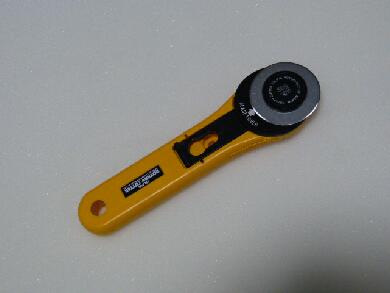 なのでローラーカッターを使ってカットします。刃先が回りながらカットできるのでスポンジを潰し気味にカットすることでわりと綺麗にまっすぐカットできます。 |
