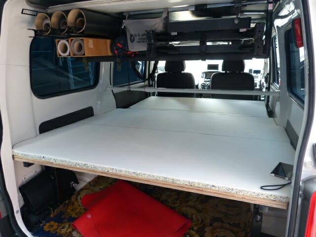 | 機材を積む目的でベッドキットを使って2段積みを考えていたので実際に寝ることはないかと思いますが、せっかくここまで作ったのでクッション材を張ります。シンコールのクッション材です。 |