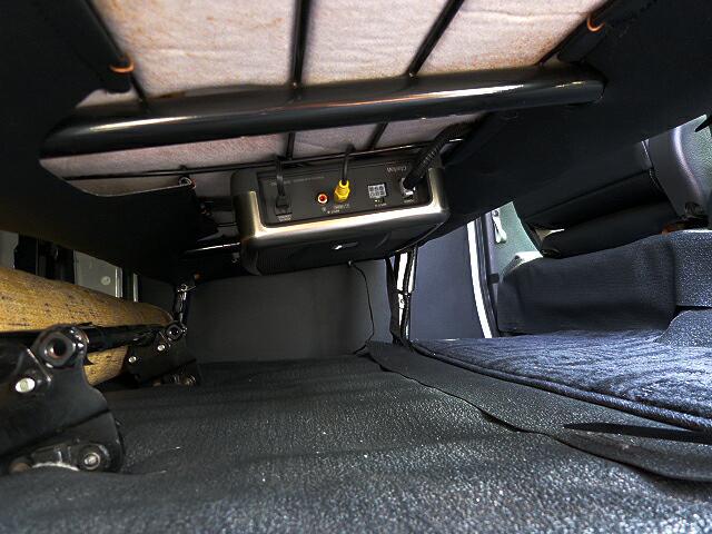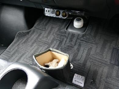 一番最初に考えたのがフロントのフロアです。ここならばセカンドシート以降のスペースを一切殺さずに設置可能です。ただ、なんとなく本体が見えるだけに「やってある感」があって微妙と言えば微妙です。