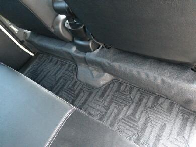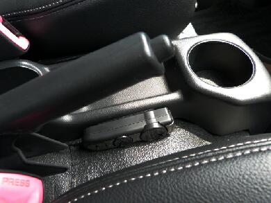 サイドブレーキ下にそこそこのスペースがあったのでここに取り付けてみました。わかりにくい方向です撮っちゃいましたが実際にはサイドブレーキの操作には全く支障がないくらいにガバガバです。普通に握って引けます。