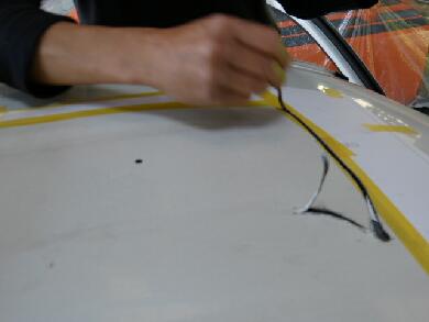 | 実はこの絵になる前の段階でサンルーフ本体と内張り側からの枠で板金を挟む工程があるのですが・・・撮り忘れました^^; サンルーフと枠は10本以上のトルクスネジを使って固定します。内張り側の枠にも防水用のパッキンをはめてから装着する感じです。画像は内張りとサンルーフを馴染ませるためのゴム製の枠がついてしまっている状態です。※内側固定枠の画像も後ほど用意します。 |