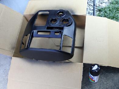 とりあえず小傷のついたインパネをバラします。小傷と言ってもほんとにちょっとですが、若干エグれてしまうような傷なので普通の塗料では均せない雰囲気ということでストーンスプレーを使用します。