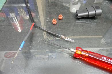 配線の先端はぶった切り状態ですのでまずはコネクターを取り付けます。