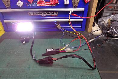 まずは室内にてスイッチとリレーのシュミレーションです・笑 ちなみにこちらのLED作業灯はタウンエースに取り付けるつもりで購入しましたが、アイバワークスのキャリアの前面にある隙間にうまいこと収まらなかったので在庫となった商品です・爆