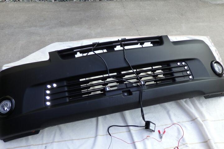 実はこのデイライト、10連にして装着しないと壊れます。バンパー下部のスペースは4つ・・・形状的に上段か下段を2発にするのが良さそうです。