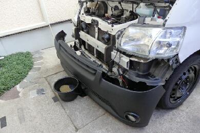 埋め込み加工とバンパー内の配線が完了したので装着準備です。