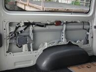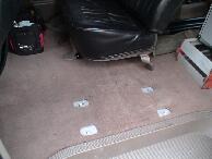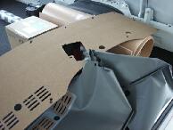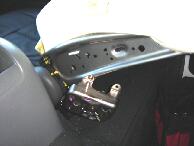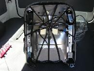 ウレタンをめくってフレーム部分にアームレストの台座を取り付けます。アームレストの台座の取り付け面がフラットだとアタリを取り易いので今回はオデッセイのアームレストを使用しました。 |
